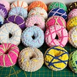 Een doosje met zes gehaakte donuts. Verkrijgbaar in katoen of lekker zacht polyester.